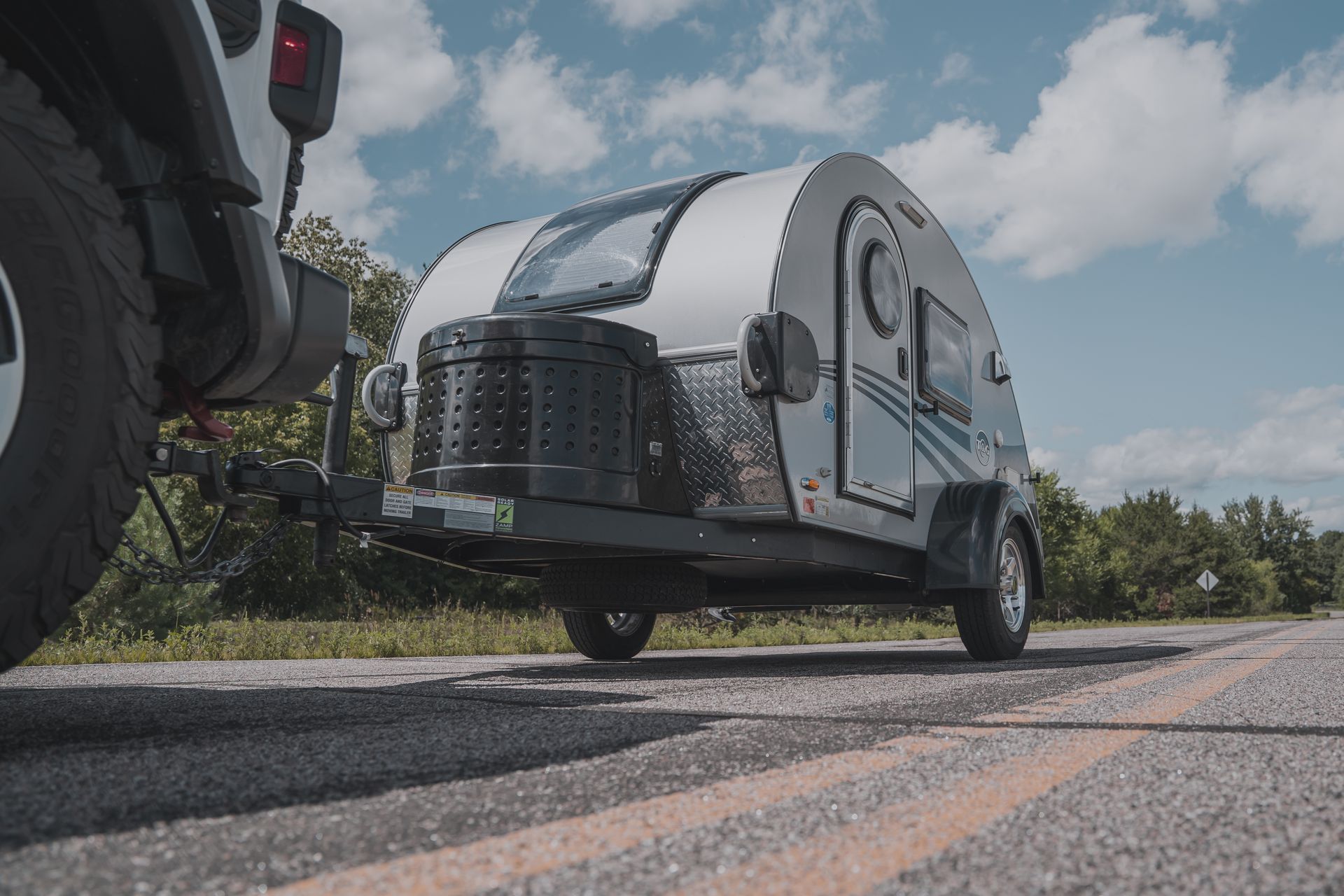 The trailer can be powered by connecting to an electrical source (shore power), battery, or solar (solar suitcase available at an additional charge). When traveling, power is transferred from your vehicle to recharge the batteries.